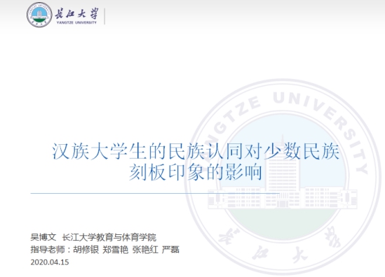 (通讯员 钟燚)2020年4 月15日,第55期社会心理学例会采取线上的方式如期举行。严磊老师参加了本次例会。本次例会由吴博文同学汇报他的研究设计:“汉族大学生的民族认同对少数民族刻板印象的影响”。