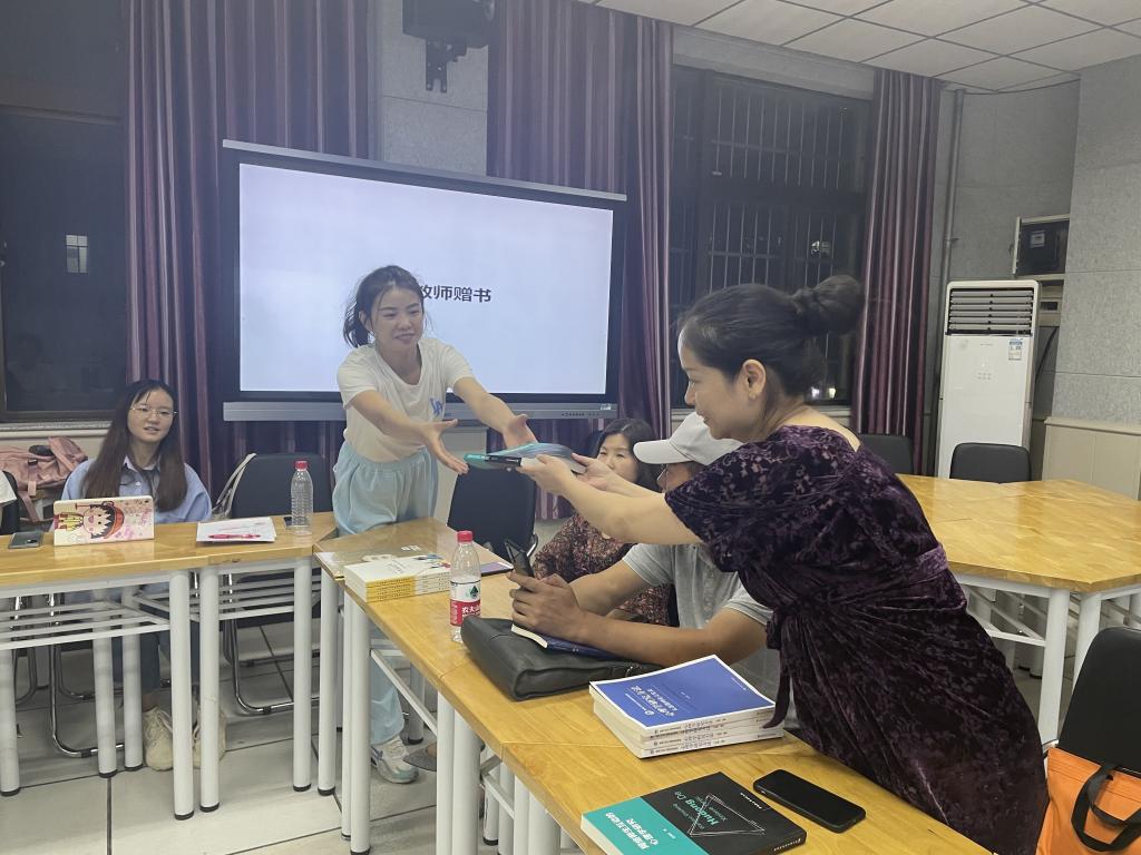 会议第四项,激动人心的赠书仪式,张老师、郑老师、胡老师分别给研一新生赠送了精心准备的书籍,希望研一的新同学们能够不负老师的美好期望,走得更稳更远。