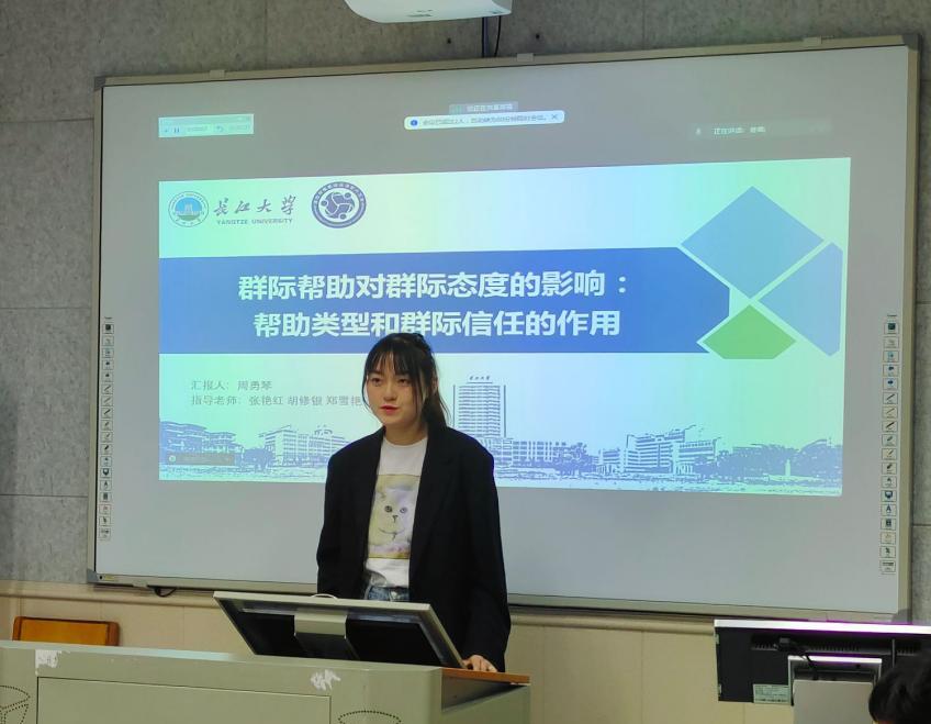 接着,周勇琴同学汇报的毕业论文基于社会认同理论,采用问卷法和实验法探讨了群际帮助对群际态度的影响,共包括4个子研究:研究1探讨了群际帮助情况对外群体评价的影响;研究2探讨了群际帮助类型和动机推测对外群体评价的影响;研究3a和研究3b分别在实验室情景和自然情景中探讨了群际信任和不同帮助类型对外群体评价的影响。研究结果丰富了群际帮助的地位关系模型,深入探讨了群际互动中帮助行为的复杂机制,为群际帮助的现实实施提供了启示。