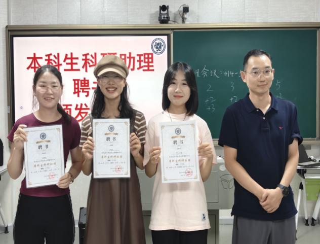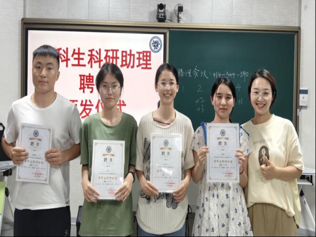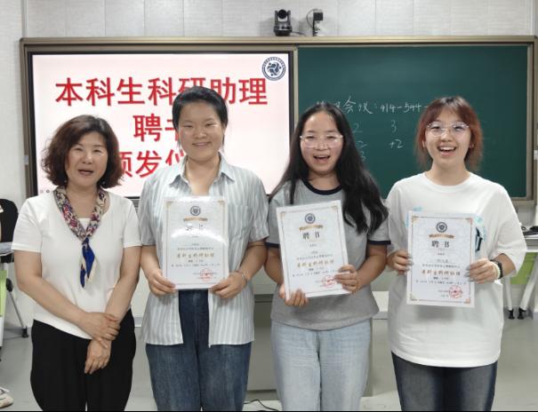 紧接着各位老师依次上台,为16名本科生科研助理颁发聘书,并由本科生科研助理代表上台发言,分享他们的科研经验和感受。