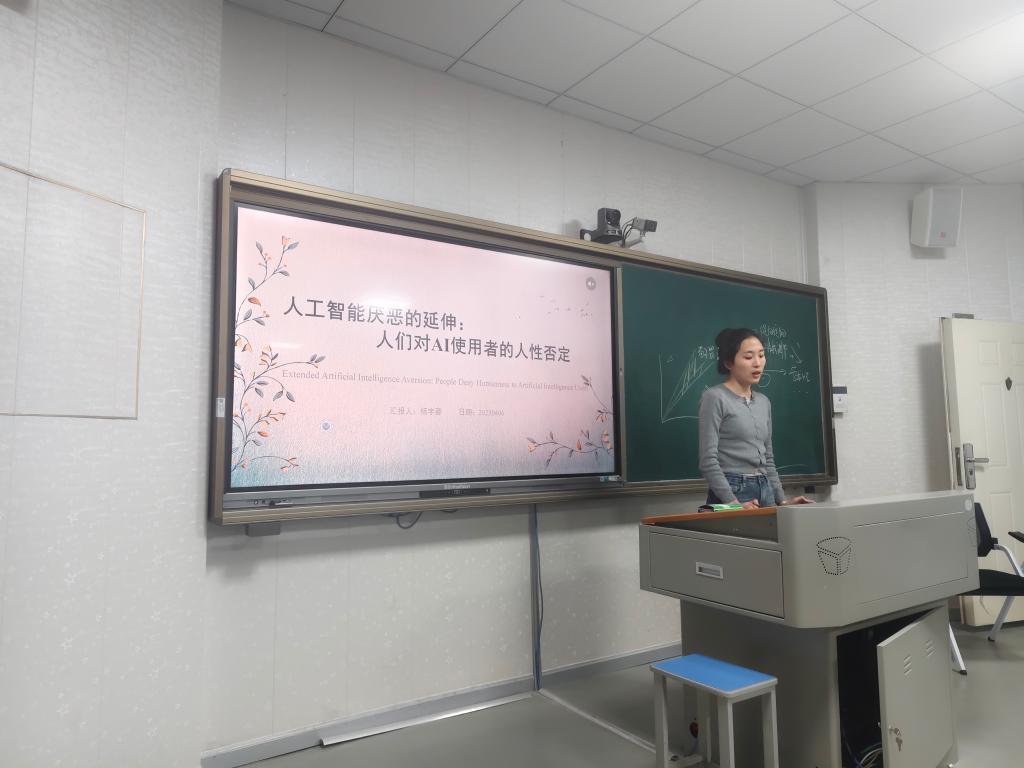 2025年4月6日晚7点,本学期青少年网络心理与行为第四期例会在11教205开展,连帅磊老师、朱晓伟老师、甘雄老师和组内研究生共同参与了本次例会。会议进行得非常顺利。 首先,朱晓伟老师以"网络游戏何以吸引人——基于互联网的特点分析"为主题开展讲座。朱老师详细地向同学们讲解了互联网的特点;继而从满足心理需求、获得能力感、逃避现实、享受沉浸等角度全面地向同学们阐明了“网络游戏为什么如此吸引人”。最后,朱老师从行为主义视角剖析了“为何停不下来玩网络游戏”的缘由,并向我们介绍网络游戏中存在的强化程序,整场汇报幽默有趣又干货满满,同学们收获颇丰。 其次,胡双双同学汇报了一篇发表在《Journal of Affective Disorders》的文章,题为《Parental phubbing, problematic smartphone use, and adolescents' learning burnout: A cross-lagged panel analysis》,当前研究根据社会学习理论,资源枯竭理论首次纵向检验智能手机使用在父母低头行为与学业倦怠之间的中介路径。并检验性别是否在其中起调节作用。结构方程模型表明,父母低头行为通过增加青少年问题性智能手机使用,进一步加剧学业倦怠。并且性别的调节作用不显著。汇报结束后,胡双双同学对两位同学就汇报中的方法部分所提出的问题进行解答,最后连老师对其汇报进行了总结,并解释了结构方程模型中构型不变性、度量不变性以及标量不变性的含义。 最后,杨宇蓉学姐带来的是发表在《Journal of Personality and Social Psychology》上的一篇文章,题为《Extended Artificial Intelligence Aversion: People Deny Humanness to Artificial Intelligence Users》。该研究探讨了相较于非AI使用者(人类建议寻求者),人们是否更倾向于否认AI使用者(AI建议寻求者)的人性特质?如何预测并干预这种针对AI使用者的去人性化现象?8项研究表明,个体对AI建议寻求者(相比于人类建议寻求者)赋予更少人性特质。去人性化在基本人性纬度(情感性)比独特人性纬度(理性)更显著。汇报结束后,朱老师对其各部分实验研究进行了阐述,并引导同学对其研究结果进行讨论和解答。 至此,本期例会圆满结束,相信大家一定收获满满,让我们一起期待下周的文献汇报吧!