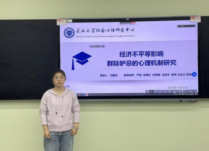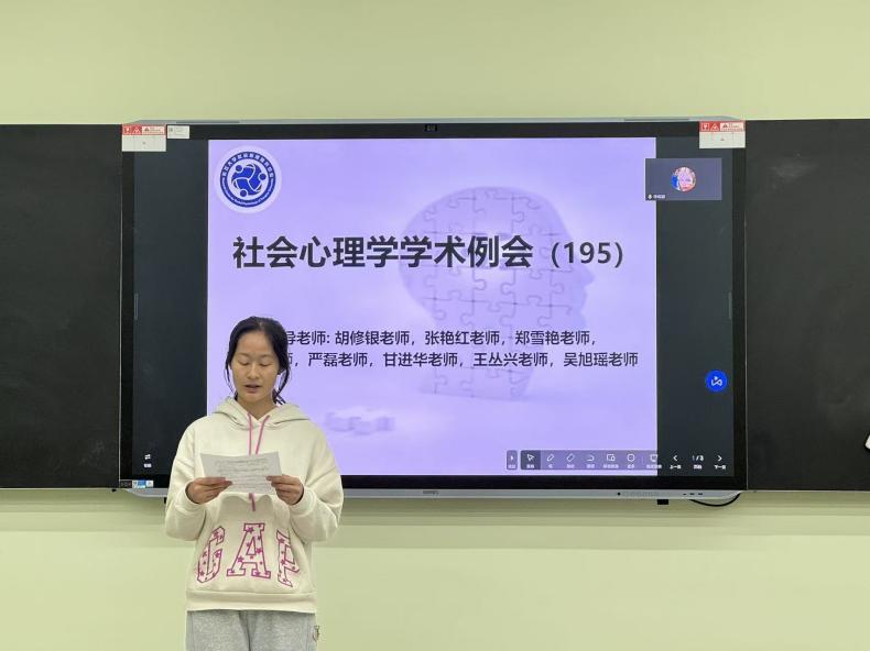 (通讯员:张立华)2025年11月11日19时00分至21时00分,第195期社会心理学学术例会在bat365官方网站东校区16教A102室如期举行。本次例会采取线上线下相结合的形式,由本科生科研助理陈傲霜同学主持,主题为“毕业论文预答辩”。参加本次例会的老师有王丛兴老师、吴旭瑶老师和杨林川老师(三峡大学),学生有14位心理学研究生,20位本科生科研助理。 首先,刘嘉玲同学进行了毕业论文预答辩,其论文题目为《经济不平等影响群际妒忌的心理机制研究》。 刘嘉玲同学遵循“概念澄清﹣因果关系﹣机制探索”的思路,探究经济不平等影响群际妒忌的心理机制。她的研究包含三个部分:研究一采用访谈法、扎根质性研究和因素分析法,探明群际妒忌的概念内涵及测量工具;研究二采用实验室实验法,检验经济不平等影响群际妒忌的因果条件;研究三采用问卷调查和实验法,检验其中的心理机制。汇报的最后,刘嘉玲同学分享了其后续工作安排及待讨论的问题。 其次,李璐瑜同学进行了毕业论文预答辩,其论文题目为《学校认同对低阶层青少年抑郁情绪的影响:共生资源的中介及学业内卷感知的调节》。 李璐瑜同学立足于社会认同理论、社会认同影响抑郁的能动共生模型、规范焦点理论,采用问卷法与课程干预的研究手段,旨在深入探讨学校认同对低阶层青少年抑郁情绪的影响,以及共生的中介作用、学业内卷感知度对于抑郁情绪的调节作用。汇报的最后,李璐瑜同学分享了其后续工作安排。 教师点评环节,针对刘嘉玲同学的汇报,杨林川老师对其研究的理论创新价值进行了肯定,并提出几点疑问:(1)研究群际妒忌的原因以及群际妒忌的独特性;(2)群际接触在研究中的作用如何体现。王丛兴老师提出几点建议:(1)群际妒忌的概念界定需要进一步明确,以区分其与个体妒忌的界限;(2)研究方法与研究问题不匹配,建议采用实验法研究群际妒忌这种群体情绪。吴旭瑶老师提出了几点建议:(1)研究的实际范围是低阶层对高阶层的恶意妒忌,建议修改研究题目,明确研究范围;(2)研究模型中未充分考虑阶层流动、群体规模差异等因素。 针对李璐瑜同学的汇报,杨林川老师首先肯定了该同学的进步,并提出几点建议:(1)在做内卷干预时应有明确界限;(2)影响情绪的因素不止一个,在做干预时要考虑到一些变异情况。王丛兴老师提出几点建议:(1)要把社会阶层作为调节变量划分为低、高阶层进行对比,探究其显著性差异;(2)在后续干预过程中,要注意操作的规范性。 本次学术例会主要由研究生进行毕业论文预答辩。在此次例会中,老师们对同学们的汇报内容进行了相关指导,为她们后续研究的推进指明道路。至此,第195期社会心理学学术例会圆满结束,下周同一时间我们再会!