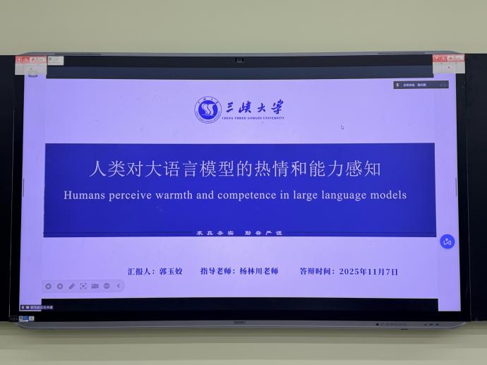 最后,郭玉姣同学进行了文献汇报,其汇报题目为《人类对大语言模型的热情和能力感知》。