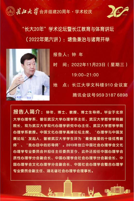 “长大20年”学术论坛暨长江教育与体育讲坛(2022年第六讲)