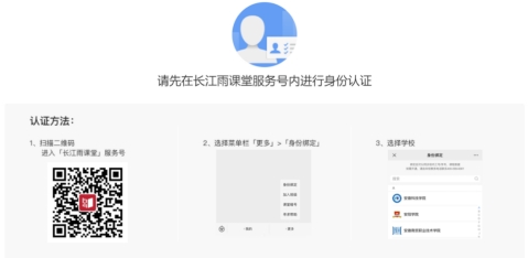 身份认证(如果已完成身份认证,请略过此步骤):登录平台前,请先在“长江雨课堂”微信服务号内进行身份认证-选择学校:bat365官方网站,按页面提示输入账号密码(账号是学号,密码是学号后6位)