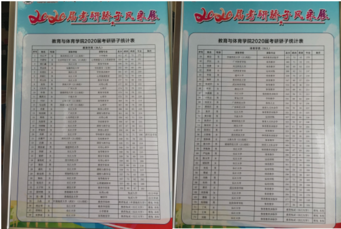 bat365官网2020届应届本科毕业生在全国硕士研究生入学考试中取得了骄人成绩,经过初试、复试、面试等层层考核和选拔,共计74人考取硕士研究生(教育类38人,体育类36人),其中考入985、211高校共11人。他们自强不息、矢志不渝、顽强拼搏、砥砺奋进的精神在各自人生中画上了浓墨重彩的一笔。