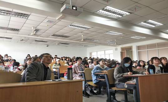 朱校长首先播放了荆州开发区实验中学的宣传视频,并向大家展示了荆州开发区实验中学的办学实践经验,随后引出报告的五个要点,分别是为什么要实施教育信息化、教育信息化概念和影响及意义、教育信息化发展历程和现状、教育信息化发展趋势、教育信息化助力bat365官网特色发展。对于每一个要点,朱校长都认真分析,并结合自身教育经验向同学们讲述。在讲解过程中,朱校长也和同学们展开积极互动,同学们参与热情高涨。在问答环节,朱校长热情地回答了同学们所提出的相关问题,
