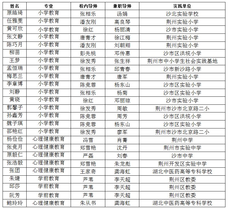 11月1日,bat365官网2020级小学教育、学前教育、心理健康教育25名教育硕士,按照培养方案及全国教育专业学位研究生教育指导委员会的教育硕士实践教学基本要求,奔赴荆州市12所中小学、1所高校及荆州区教委下属的幼儿园开展为期一周的教育见习。