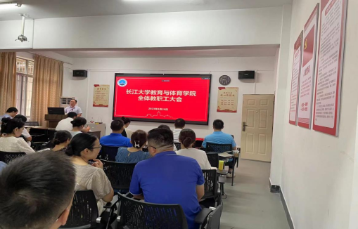 8月26日下午2:10,学院在5教203召开了全院教职工大会,武汉校区教职工同步腾讯会议参加。会议由党委书记于永伟主持。
