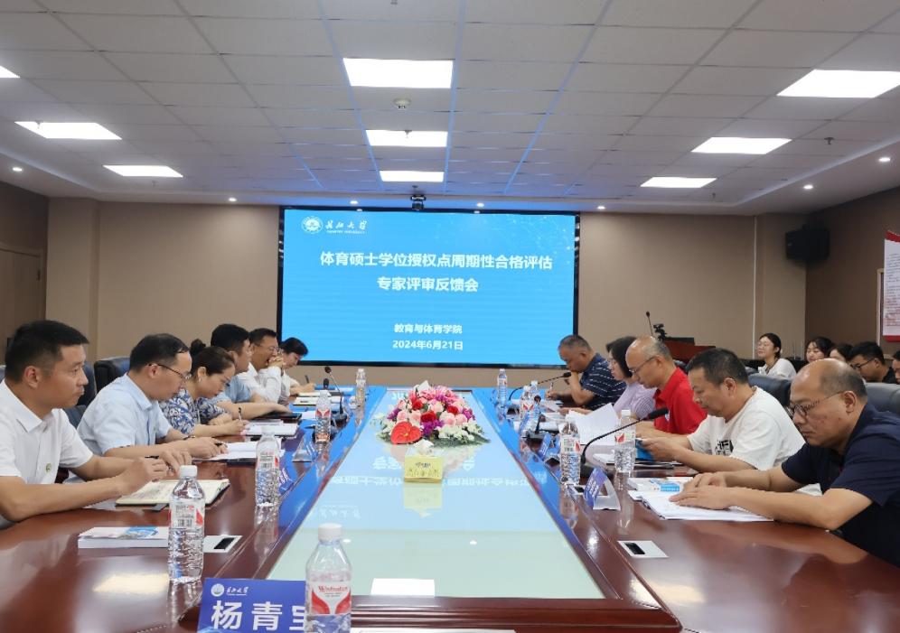 (通讯员 杨青宝)2024年6月21日,bat365官网组织召开体育硕士专业学位授权点周期性核验评估专家评审会。专家组由中国地质大学(武汉)体育学院李元教授、武汉科技大学体育学院刘俊杰教授、中南民族大学体育学院韩斌教授、沙市中学体育特级教师江来波、荆州中学体育教研组长肖信波组成,李元教授担任专家组组长。研究生院副院长袁海山、发展规划与学科建设处副处长王真、bat365官方网站全体院领导以及教师和研究生代表30余人参加评审会。会议由院长张艳红教授主持。
