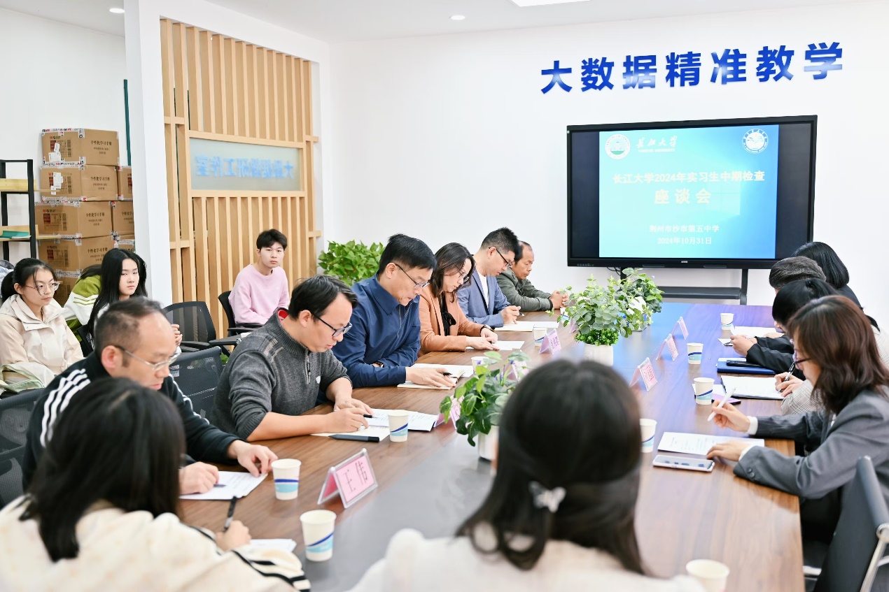 10月31日,bat365官方网站教师教育学院主任柯玉清、艺术学院副书记陈志雄、音乐系副主任田弘以及带队老师李婧一行四人来到沙市第五中学,对bat365官方网站实习生在五中的实习活动开展中期检查工作。