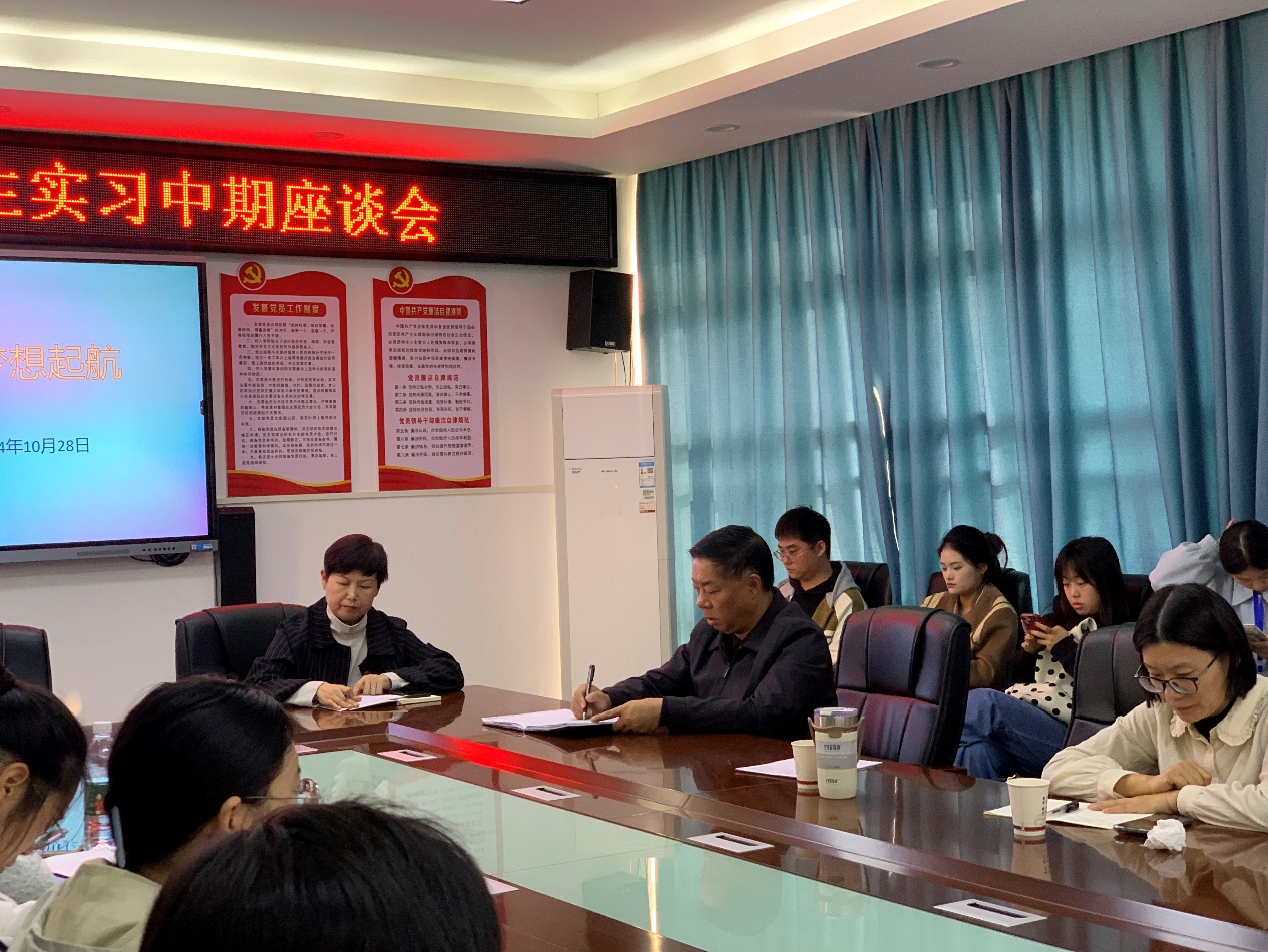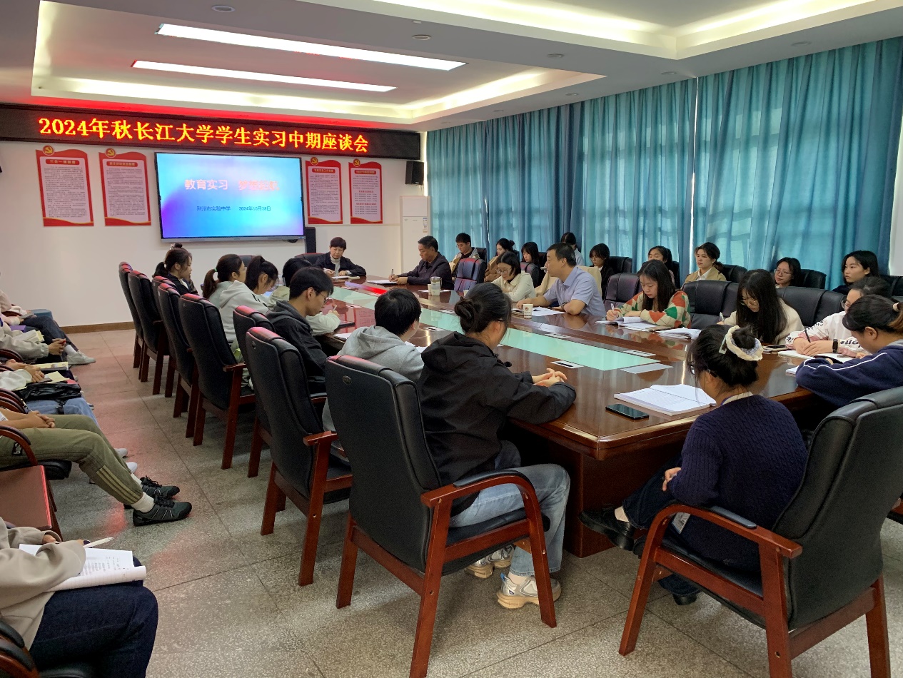 在荆州市实验中学,老师与实习生们一同召开了“教育实习,梦想启航”主题座谈会。会议由实验中学刘丽主任主持,荆州市实验中学戴明华校长,bat365官方网站到访领导及全体实习生参会。