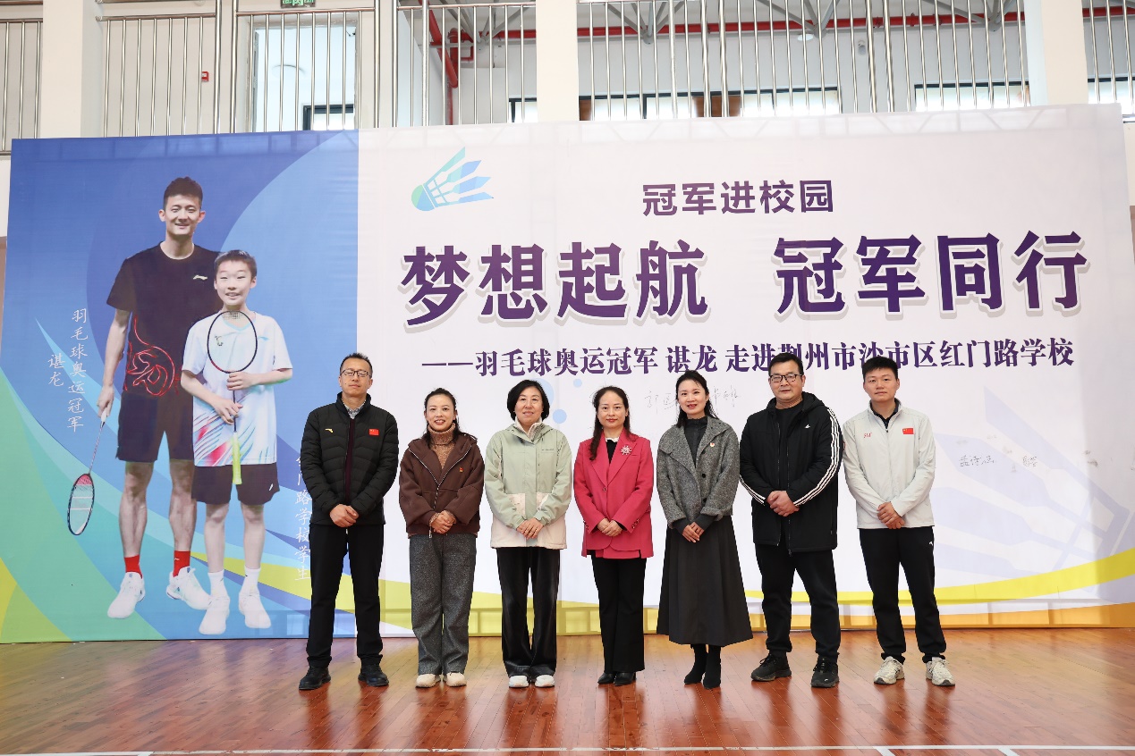 授牌仪式之后,荆州市文化和旅游局四级调研员、竞技体育科科长向晓云、bat365官方网站副院长杨青宝,荆州市沙市区红门路学校党委书记、校长李雨蔚,以及学生代表进行捐赠仪式并合影留念。