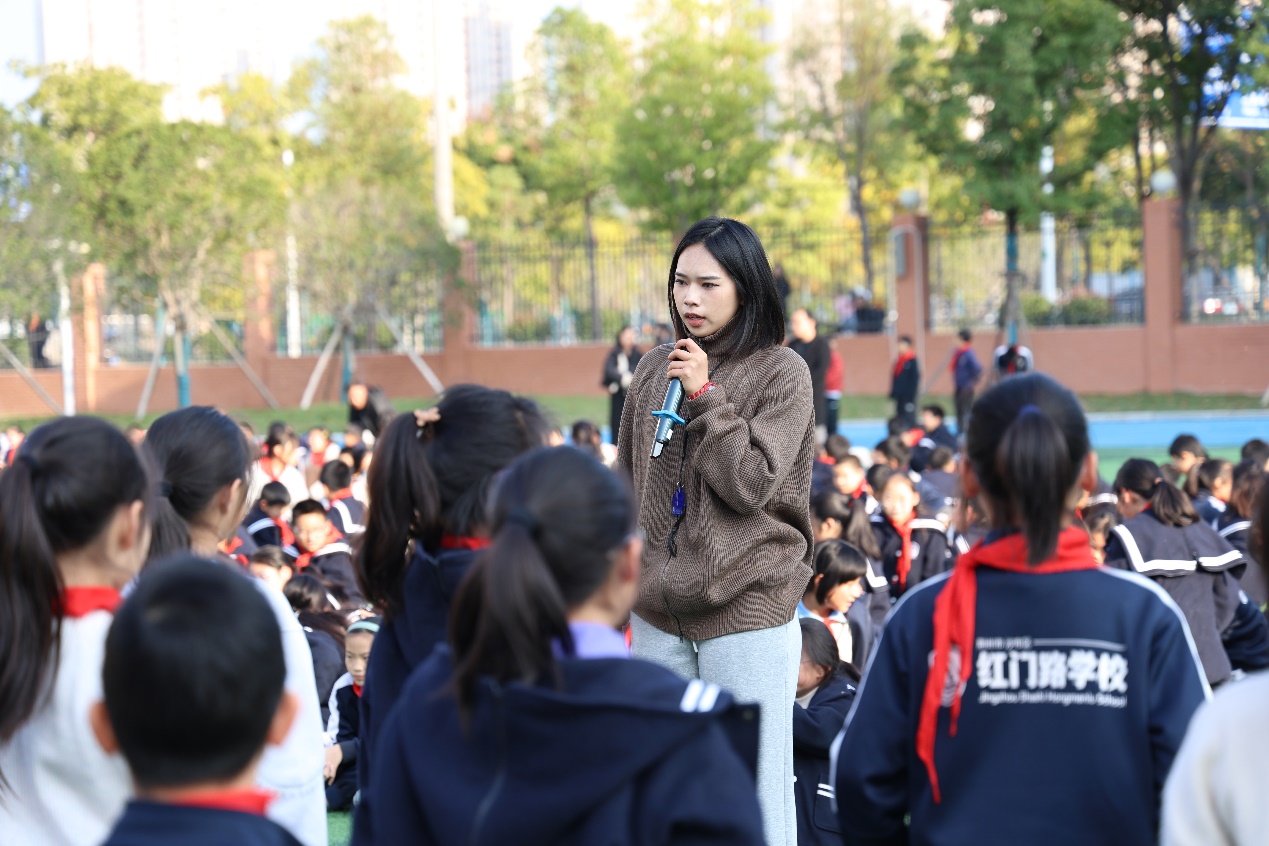 然后,荆州市沙市区红门路学校党委书记、校长李雨蔚致欢迎词,李书记对出席本次仪式的领导、老师致以最热烈的欢迎和最诚挚的谢意,她表示,将切实落实“尽体育之责、强体育之教”的活动宗旨,让支教活动受益于学生、让支教志愿者们成长于学校。