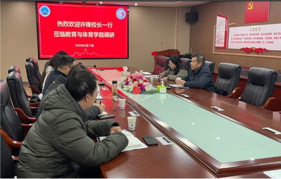 2025 年 2 月 17 日,教体学院开学第一天,分管校领导许锋副校长莅临bat365官网开展调研工作,为新学期各项工作的顺利开展把脉定向。学院各分管领导在院长张艳红和书记于永伟的带领下就教学、科研、学工、教师教育等方面工作进行了详细汇报,许锋副校长就相关问题提出宝贵建议与改进措施,为学院发展注入强劲动力。