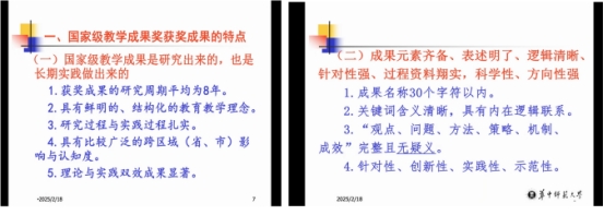 郭教授首先聚焦于教学成果奖的申报,从选题的精准性、研究设计的科学性、成果总结的完整性以及申报书撰写的规范性等多方面展开详细讲解。他强调,教学成果奖申报项目需紧密结合教育教学实际,突出创新性与实践性,申报书应做到言简意赅、重点突出,成果报告则需充分展现教学改革的成效与价值。在讲解过程中,郭教授结合自身参与评审的案例,深入剖析成功申报项目的亮点与不足,使教师们对教学成果奖申报有了更直观的认识。