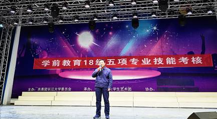 张相乐院长在开场致辞中谈到,世界上最难的工作是培养人的工作,在培养人的工作中最难的是幼儿园老师,非常感谢学前教育专业的学生能选择这份专业。最后,他预祝同学们本次舞蹈考核人人过关,也预祝此次舞蹈汇报演出圆满完成。