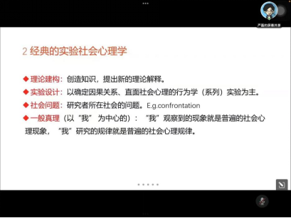 严磊博士还简要说明了经典的实验社会心理学,分析了当前实验社会心理学的研究现状和不足。严博士回到社会心理学的起点,从马克思主义哲学观和“他人存在”的理论基础出发,详细阐述了社会心理学的内涵与发展脉络,分析了以往的跨文化心理学、本土心理学和文化心理学的不足之处,并提出了未来社会心理学研究可能的新思路和可能的研究问题。