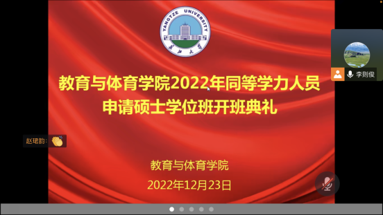 最后,研究生院曾威副院长铿锵有力的宣布2022年教体学院同等学力班开班。