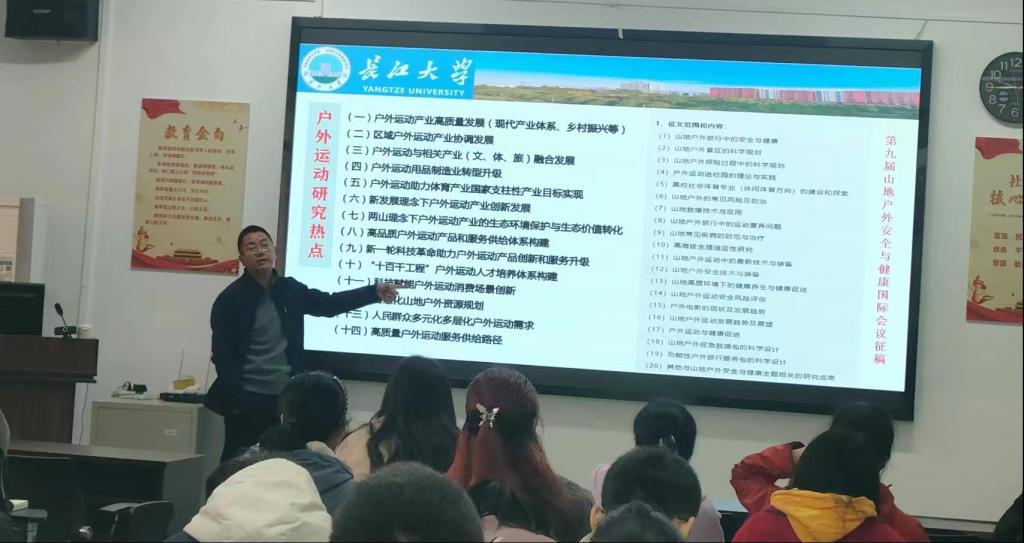 刘教授向同学们分享了户外运动研究热点,主要聚焦于:(1)户外运动不平衡、公众认识不足等发展概貌;(2)在新时代新发展要求下户外运动产业发展的机遇;(2)户外运动所面临的现实问题与未来发展趋势;(4)户外运动开展的目标任务与活动开展中的现实保障;(5)户外运动目前相关的研究热点。刘教授通过以上的相关内容,综合全面的向同学们展示了户外运动产业发展的浓浓生命力。