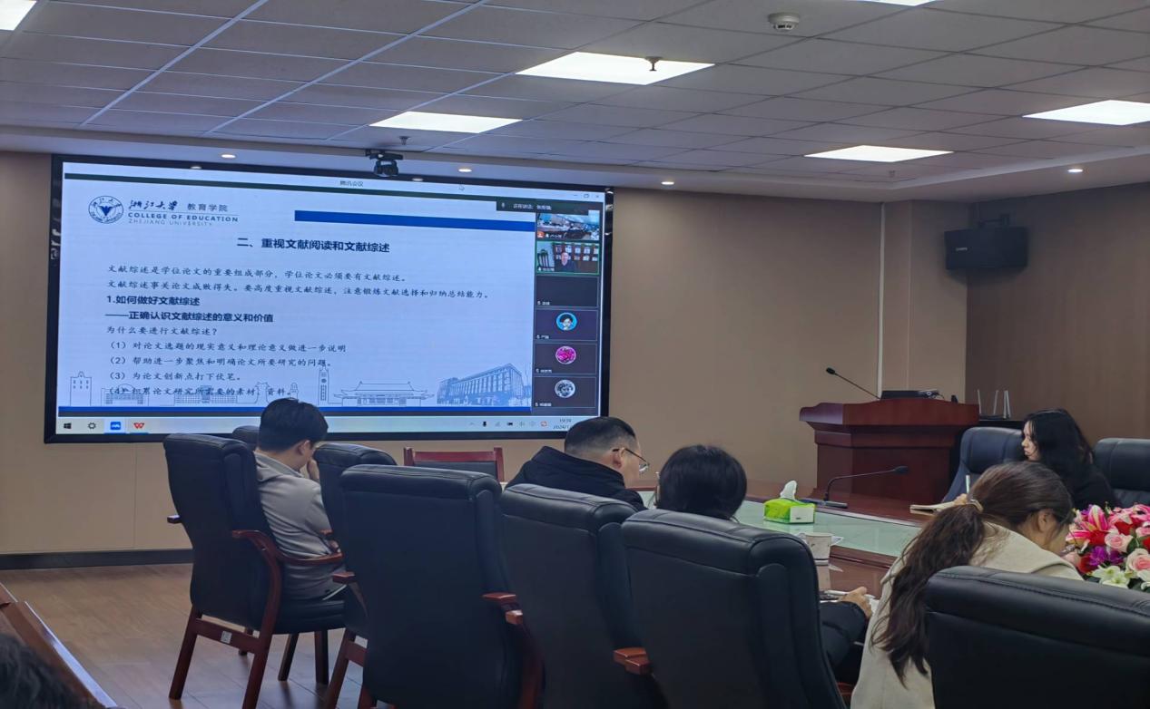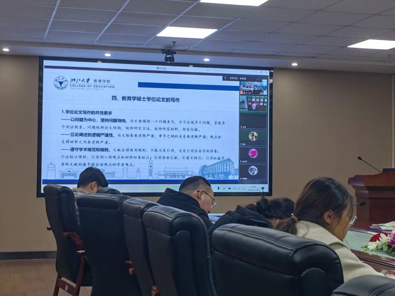 为了强化bat365官网研究生导师培养,提升导师岗位胜任力,全面提高研究生培养质量,尤其是学位论文质量。2024年12月4日晚,bat365官网在文科大楼905会议室举行本学期第二场导师培训,本次特邀浙江大学张应强教授进行线上讲座,讲座主题为《教育学硕士学位论文的选题和写作》,bat365官网教育学专业全体研究生导师参会,培训会由熊猛副院长主持。