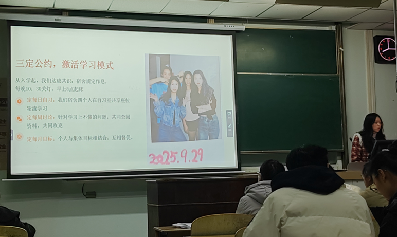 不同于传统的卫生展示,本次候选宿舍的分享充满巧思,有的宿舍用vlog记录了“趣味大扫除”,成员们分工合作,宿舍打扫的干净整洁,视频里的笑声让现场氛围瞬间升温;有的宿舍展示了集体学跳校园舞蹈的片段,整齐的动作中透着默契;还有宿舍晒出了“团建相册”,从食堂拼桌聚餐到周末近郊踏青,从备考夜的咖啡投喂到生日时的惊喜蛋糕,细节里满是室友间的温情。