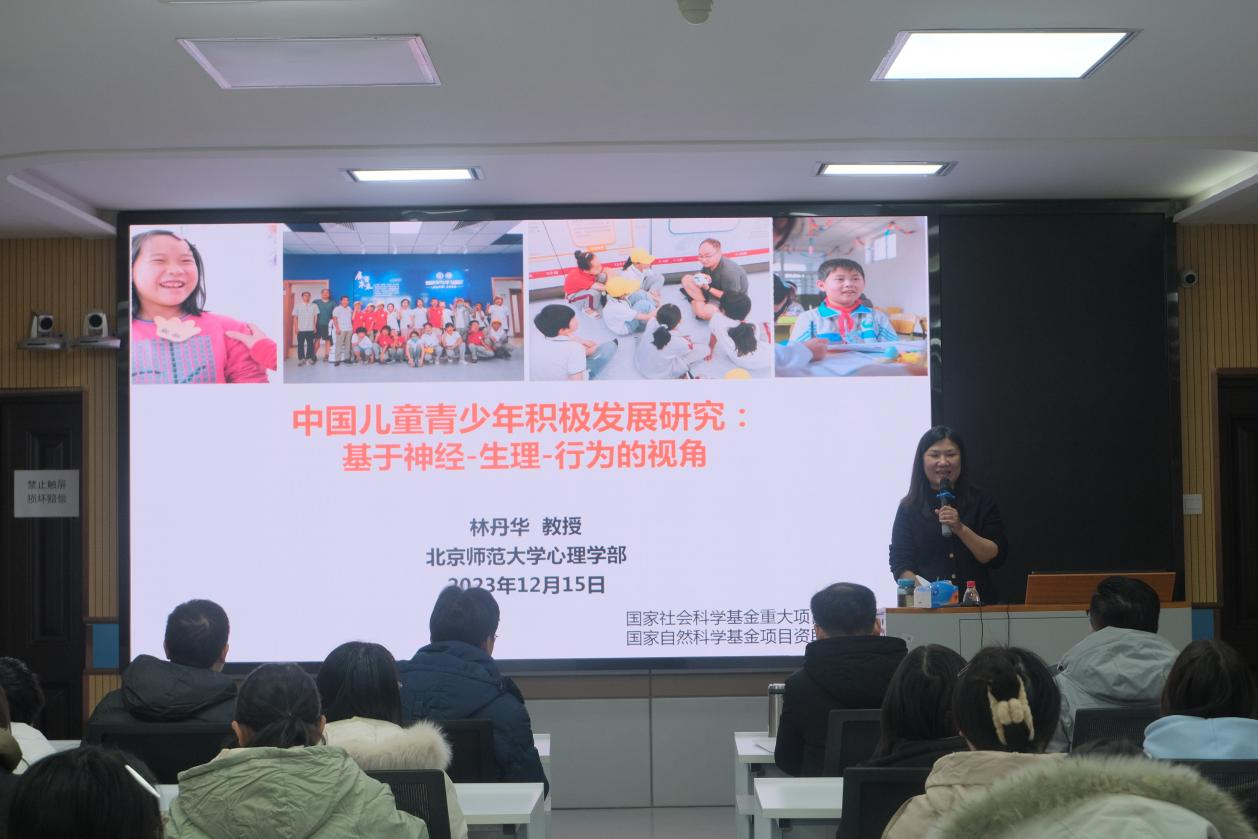 (通讯员:张泽)2023年12月15日上午,文科大楼910报告厅座无虚席,北京师范大学教授、博士生导师林丹华受邀莅临bat365官网开展交流活动,讲座主题为《中国儿童青少年积极发展研究:基于神经-生理-行为的视角》。报告会由副院长熊猛教授主持,bat365官方网站院长张艳红教授,导师代表朱晓伟副教授、严磊副教授、连帅磊副教授、甘雄副教授、王文静副教授、卢忠耀博士、冯雪博士以及心理学专业研究生和本科生参加了本次讲座。
