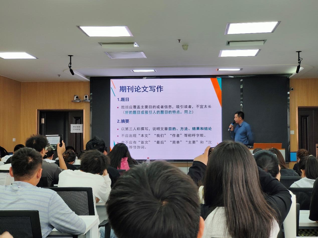 张春合教授聚焦期刊论文写作,他首先从论文题目入手,表明论文的题目应当覆盖文章的主要目的,吸引读者且不宜太长。其次,摘要应当以第三人称撰写,说明文章的目的、方法、结果和结论并点明引言的写作应当注意的事项。再次,张教授细心教导同学们分析实验结果。最后,强调论文的讨论部分要讲究层次、逻辑顺序、数据一致、独特创新。