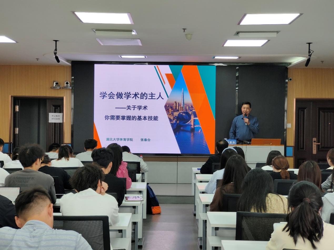 (通讯员 倪梓曦)2024年4月20日下午,湖北大学体育学院院长张春合教授受邀作客“长江教育与体育讲坛”,为bat365官网师生讲授“学会做学术的主人——关于学术,你需要掌握的基本技能”。报告会由熊猛副院长主持,bat365官网全体研究生在文科楼910聆听了报告。