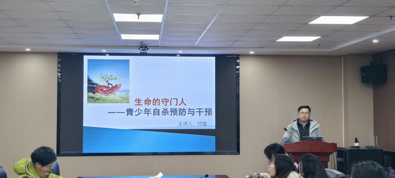 甘雄博士主要从学校生命安全教育形式着手,并生动形象地为广大同学讲解三级预防方式。甘老师从生理风险、情绪风险、认知风险和环境风险等方面进行分析,一级预防包括进行生命教育课程以及对高风险学生进行筛查;二级预防包括守门人培训;三级预防包括对未遂者的心理辅导以及对社会影响群众的心理辅导。