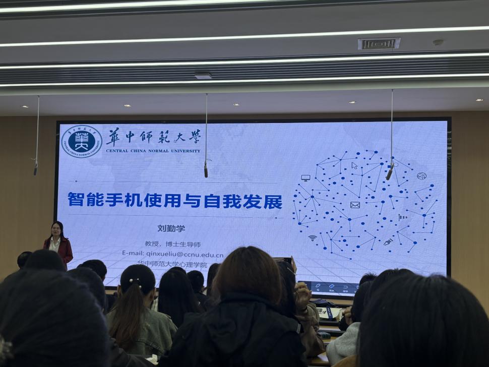 本次特别邀请了华中师范大学心理学院教授刘勤学博士担任主讲人,她为bat365官网师生带来了一场题为《智能手机使用与自我发展》的精彩报告,讲座由院长助理严磊博士主持,心理系教师、心理学各领域研究生和本科生聆听了此次学术报告。
