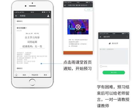 若老师给学生推送了预习资料,各位同学将在雨课堂公众号里收到相应的通知提醒,点击该提醒即可启动预习,预习之后带着思考去上课。(温馨提示:请在老师规定时间内完成预习。老师能看到你什么时候完成预习,预习了哪几页等信息)