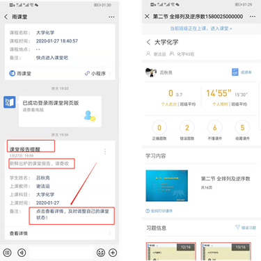 图3 学生接收上课直播提醒