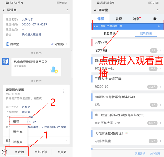 (2)从“雨课堂小程序”进入直播