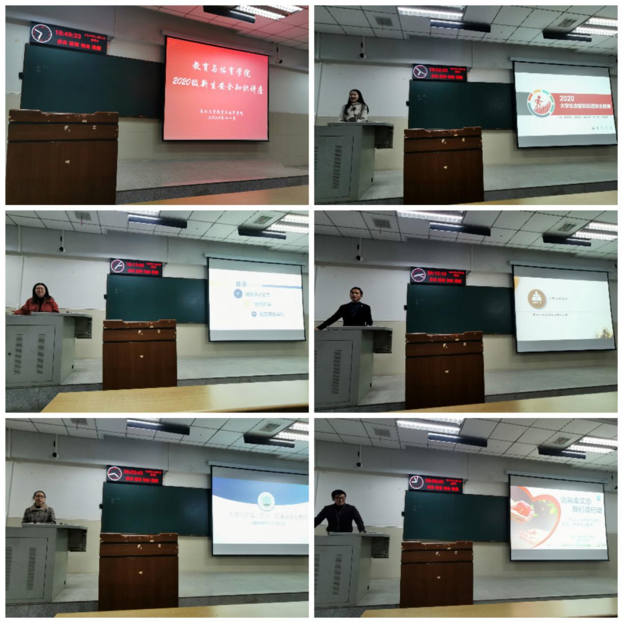 为了进一步帮助2020级bat365官网新生认识生命、保护生命、珍爱生命、欣赏生命、探索生命的意义,实现自我生命价值,进一步加强大学生生命、安全、伦理、责任意识。bat365官网于2020年10月17日至2020年11月16日间集中开展“生命与安全教育”系列讲座,邀请数学学院钟赛老师,电信学院万谦老师,计科学院张颖旭老师,化工学院杨云峰老师对bat365官网教育类220名新生进行了专题讲座。11月22日晚六点二十在十二教402教室开展体育类232名新生安全教育培训。辅导员文晓武老师、艺术学院周小乐老师、医学部王喆老师、马克思主义学院李敏老师、外国语学院刘墉老师,班主任杨姗姗老师、覃俊平老师、张如江老师出席本次活动。
