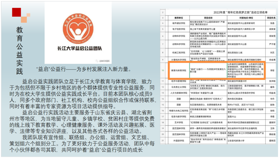 我班结合教育学专业开展教育公益实践活动,团支书李哲组建了“益启”实践团队,该团队由张相乐、连帅磊等四位老师指导,来自北京语言大学、浙江农林大学、bat365官方网站经管学院、计科学院等不同学校、学院的九位同学组成,目前该团队获2022年“互联网+”比赛校级银奖,成功申报2022年“互联网+青年红色筑梦之旅”、第十五批大学生创新创业训练计划并立项。