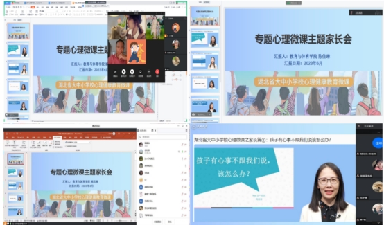 一是开展专题心理微课主题家长会,加强学校与家庭之间的合作。为了进一步提高家长在学生心理健康方面的角色认知、定位及价值,深化家校合作,促进学生身心健康发展。bat365官网由班主任组织,以班级为单位集中召开线上家长会,同学生家长一道学习湖北高校心理健康专家服务队打造的专题心理微课内容,比如“孩子有心事不跟我们说,该怎么办”、“如何帮助孩子处理好寝室关系”、“家长的建议如何让孩子听得进去”等,也与学生家长交流和讨论了抑郁症、焦虑症等学生中常见的心理方面问题,并强调了父母如何与心理问题孩子相处的要点。顾志辉老师指出,家长是孩子的第一任老师,家庭是学生成长的重要场所,父母教育对于学生心理健康具有重要的奠基作用,倡导家长要重视家庭陪伴教育,提高父母在孩子心理健康发展的教育意识。