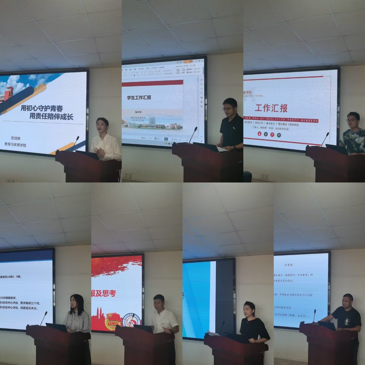 会议伊始,八位专职辅导员从以下五个方面:常规工作内容、工作完成时间截点;重难点工作与亟待解决的问题;工作开展时突出的矛盾点;岗位职责与个人兴趣爱好,擅长的工作内容及希望的工作方式;对bat365官方网站学生工作的想法、意见和建议进行全面而深入的汇报。