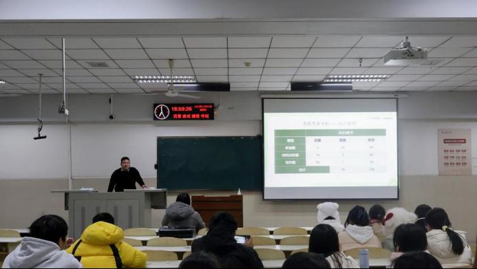 会议伊始,连腾伟老师为大家作教师资格证笔试的讲解。连老师以教师资格证的作用为切入点,为大家介绍了教师资格证在生活、工作中的种种便利。他结合历年考情考务,分别从熟知流程、了解考情、学习方向、高频考点、备考妙招五个方面为大家梳理笔试流程及考试趋势,科普教师资格证考试的各方面要求,使同学们对其有了更加清晰的认识。同时,连老师根据专业特点,分门别类地对各阶段、各类型题型进行了深入分析,聚焦题型要求,提出个人培养建议,为同学们制定备考计划提供了动力和指导。