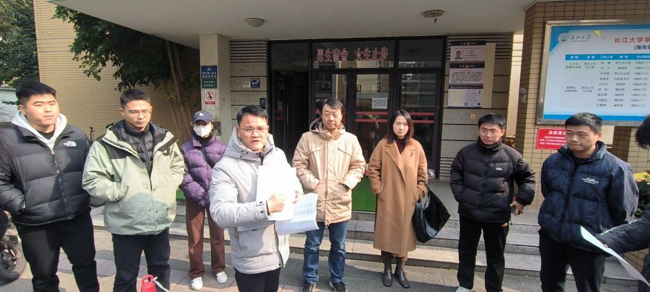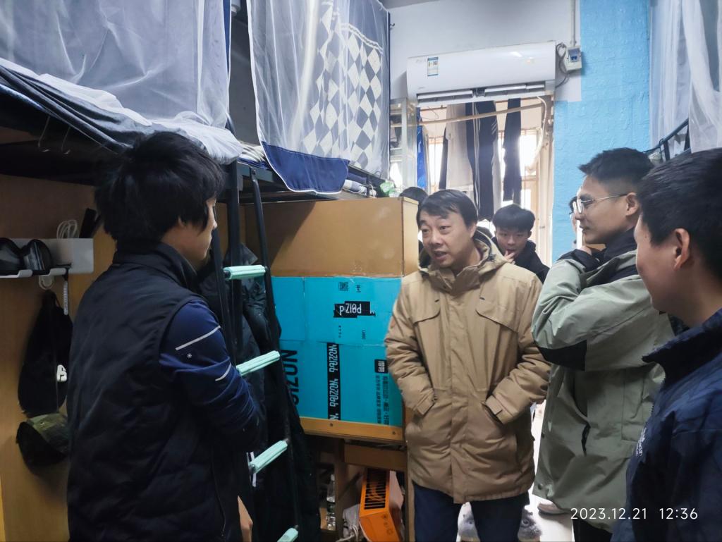 院党委副书记何可可带领各位辅导员与班主任老师,走访了本科生与研究生学生宿舍,深入排查寝室安全隐患,关心同学们的生活和学习情况。通过实地走访,老师们深入了解了同学们的生活环境,并排查了宿舍内的安全隐患。