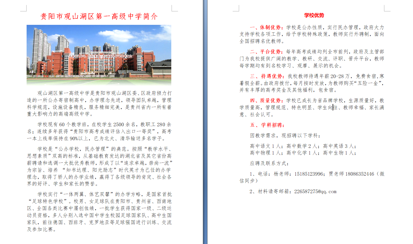 转载:贵阳市观山湖区第一高级中学招聘
