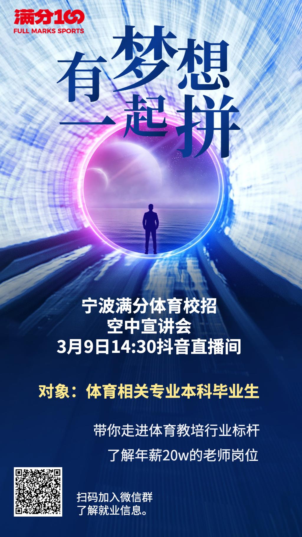 宁波满分体育发展有限公司招聘体育老师新人保底5000元单节课酬300-500元,一周6-10节课。识别二维码入群了解就业信息。