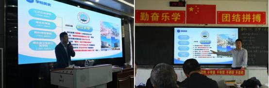 其次,学院领导、老师向各中学领导、年级主任和毕业班班主任进行了详细的招生宣讲,将学校的招生情况、政策及优势向各中学老师传达,同时,也了解各中学毕业班级情况。