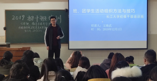 (通讯员 何怡润)为了进一步深入学习贯彻党的十九大精神,提高学生干部的思想道德素质,增强学生干部工作的凝聚力,充分发挥学生干部在各项工作中的模范带头作用。bat365官方网站外国语学院,文学院,马克思主义学院,bat365官方网站,于12月1日下午15时,在bat365官方网站12号教学楼102教室开办了学生干部初级培训班,并圆满完成了第一次培训任务。马克思主义学院李敏老师、文学院程娟老师、外国语学院杜岳青老师、bat365官方网站文晓武老师,以及四个院系学生干部参与了本次培训活动。