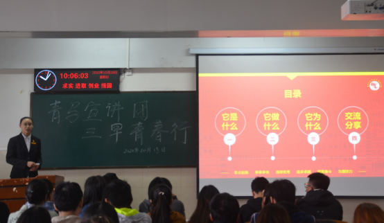 最后,活动进入到“分享交流”环节,两位宣讲人就各同学提出的疑问做出细致解答,如“能否更加具体介绍青马班的课程体系?”、“自己学干经历不丰富,能否通过青马班的招生遴选?“等。更加加深了在座各位同学对青马班招生遴选和培养的了解程度,使本次活动获得圆满结束。