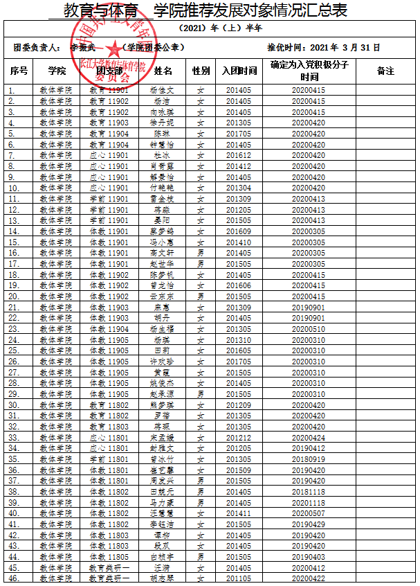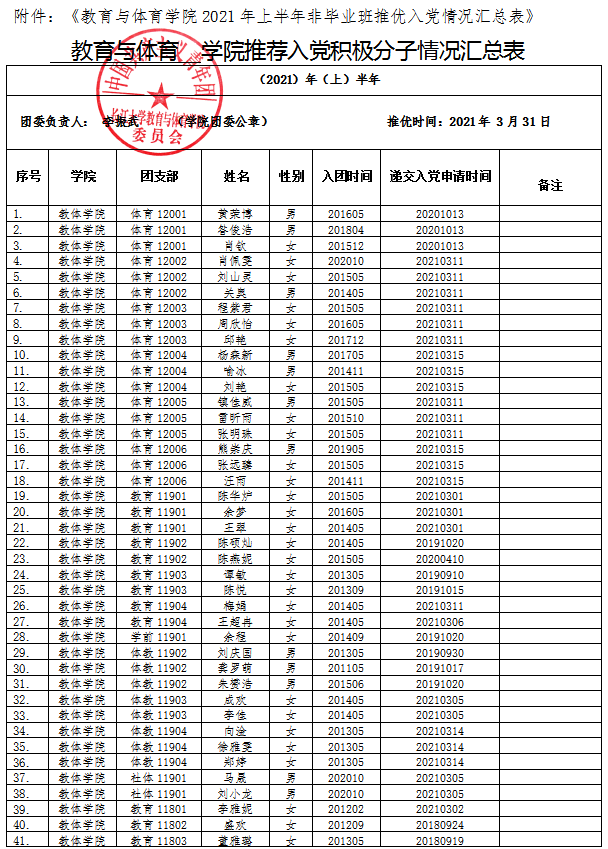 关于拟推荐2021届毕业生安霞等21名优秀共青团员为学院2021年上半年入党积极分子或党的发展对象的公示