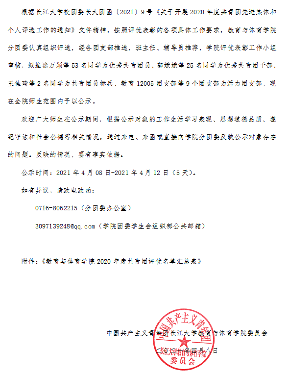 关于bat365官方网站2020年度共青团先进集体和先进个人评选结果的公示