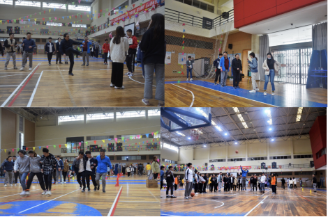 活动伊始,学院党委高明成书记就“五四精神·传承有我”为主题做了简单隆重的开幕致辞,他号召全院广大同学大力弘扬五四青年精神,传承爱国主义情怀,张相乐院长宣布活动正式开始。张相乐院长、高明成书记、李则俊副书记也参与其中,与同学们互动娱乐,在定点投篮与踢毽子项目上,张相乐院长、李则俊副书记不失当年风采,顺利完成活动,随后又在三人四足跑中与同学们组队,团结合作赢得了小组第一。