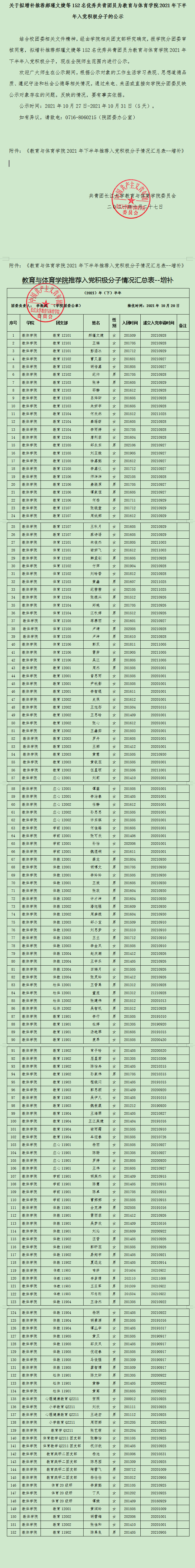 关于拟增补郝瑾文婕等152名优秀共青团员为bat365官方网站2021年下半年入党积极分子的公示