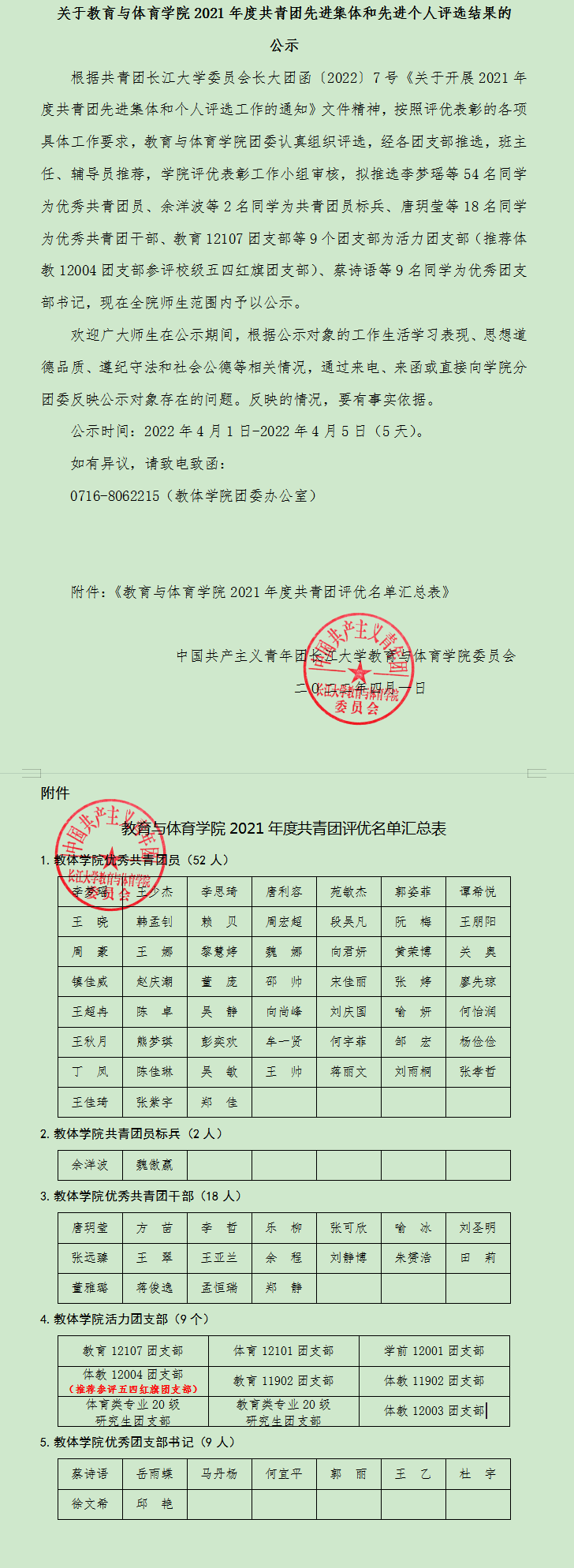 关于bat365官方网站2021年度共青团先进集体和先进个人评选结果的公示